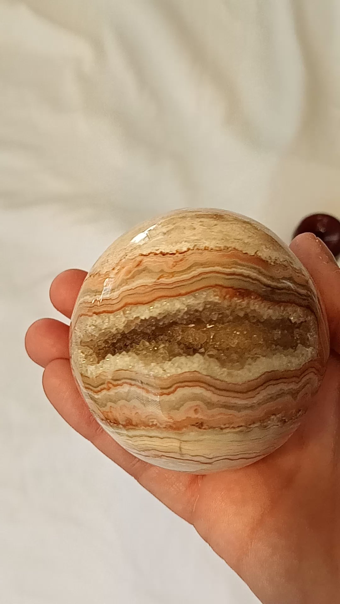 Photo is actual sphere This sphere is approx. 3.5 inches high and weighs 1lb 07oz.