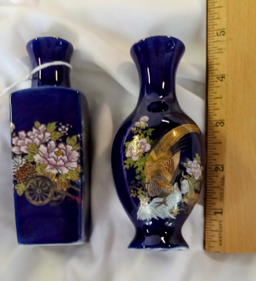 This set of two authentic Japanese Cobalt Blue Bud Vases are in excellent condition, measuring approximately five inches in height.
