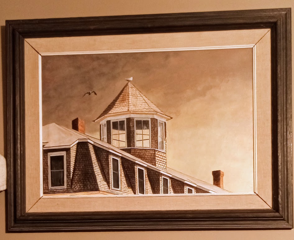 Eye-catching, framed acrylic on wood panel - signed and dated by the amazing artist Nancy Williams! It's a whopping 29.5"x22.5" of masterful creativity. Frame has some wear which is normal for a 45 year old painting.
